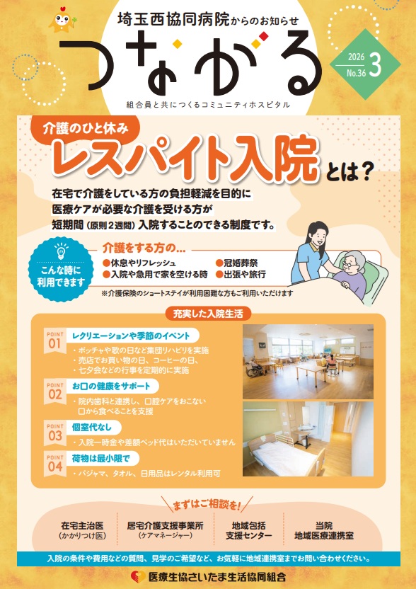 埼玉西協同病院の機関紙「西協同病院広報誌『つながる』」はこちらから閲覧できます。