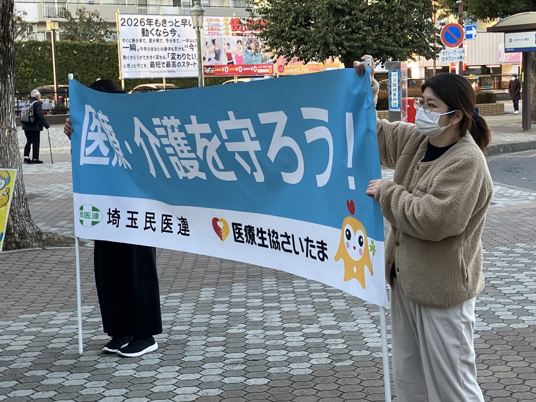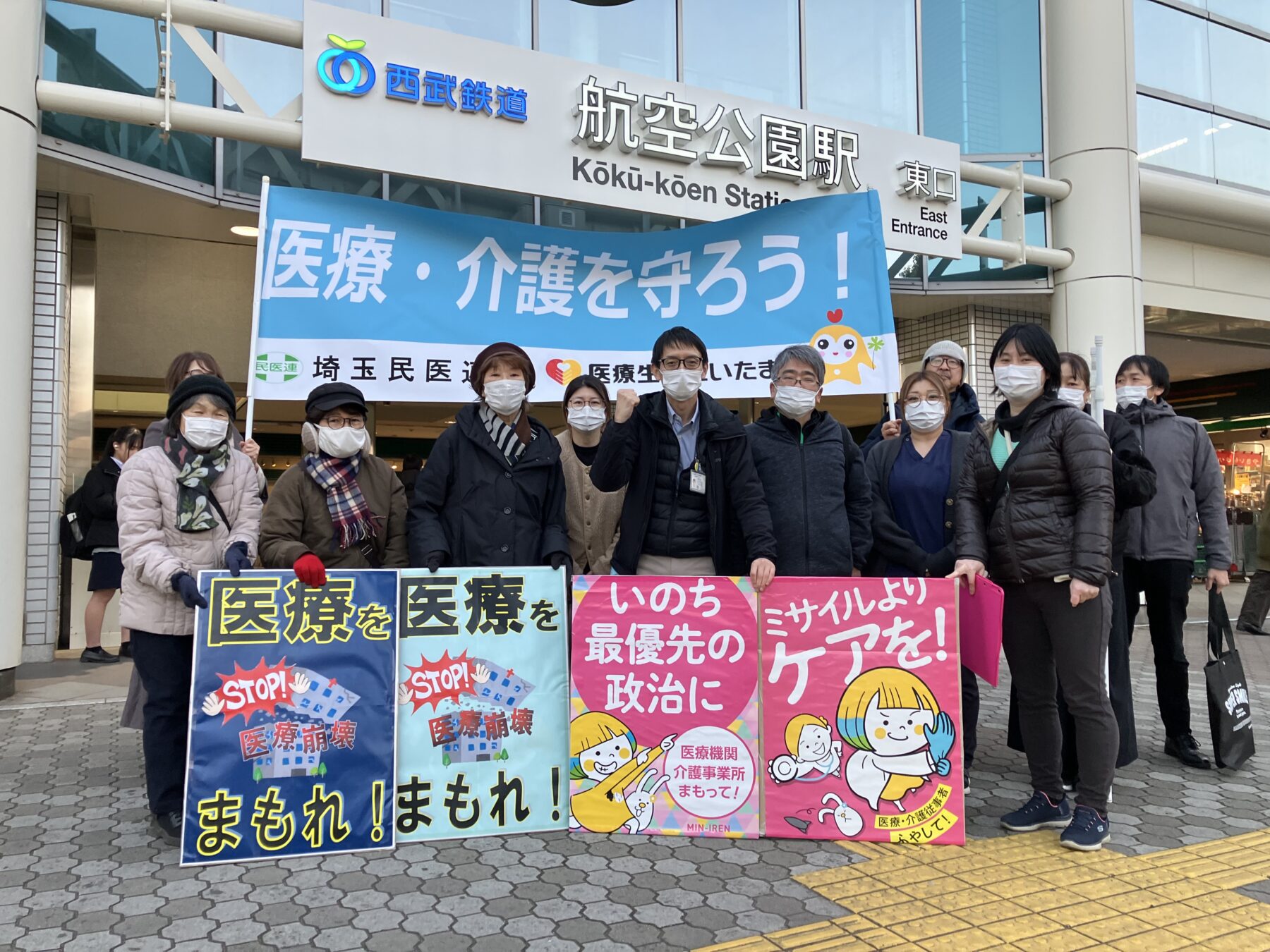 1月16日(金)「地域医療・介護を守れ!」署名活動を航空公園駅のロータリー前でおこないまいした。